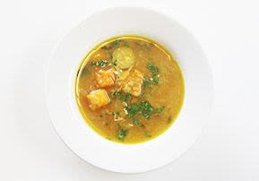 Eine Suppe unvorhersehbar und überraschend wie der Herbst. Sämig und reich, aber nicht schwer, mit einer erfrischenden Mischung von Geschmäckern und einem Geruch, der das ganze Haus erfüllt. Ein perfekter erster Gang für ein milchiges oder fleischiges Essen.